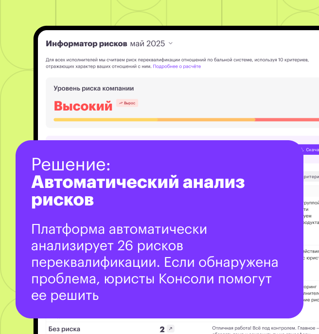 Избегайте в документах с самозанятыми исполнителями трудовых терминов: «работа», «вакансия», «заработная плата». Проверить договоры и другие документы на трудовую терминологию можно с помощью сервиса Трудоголик.