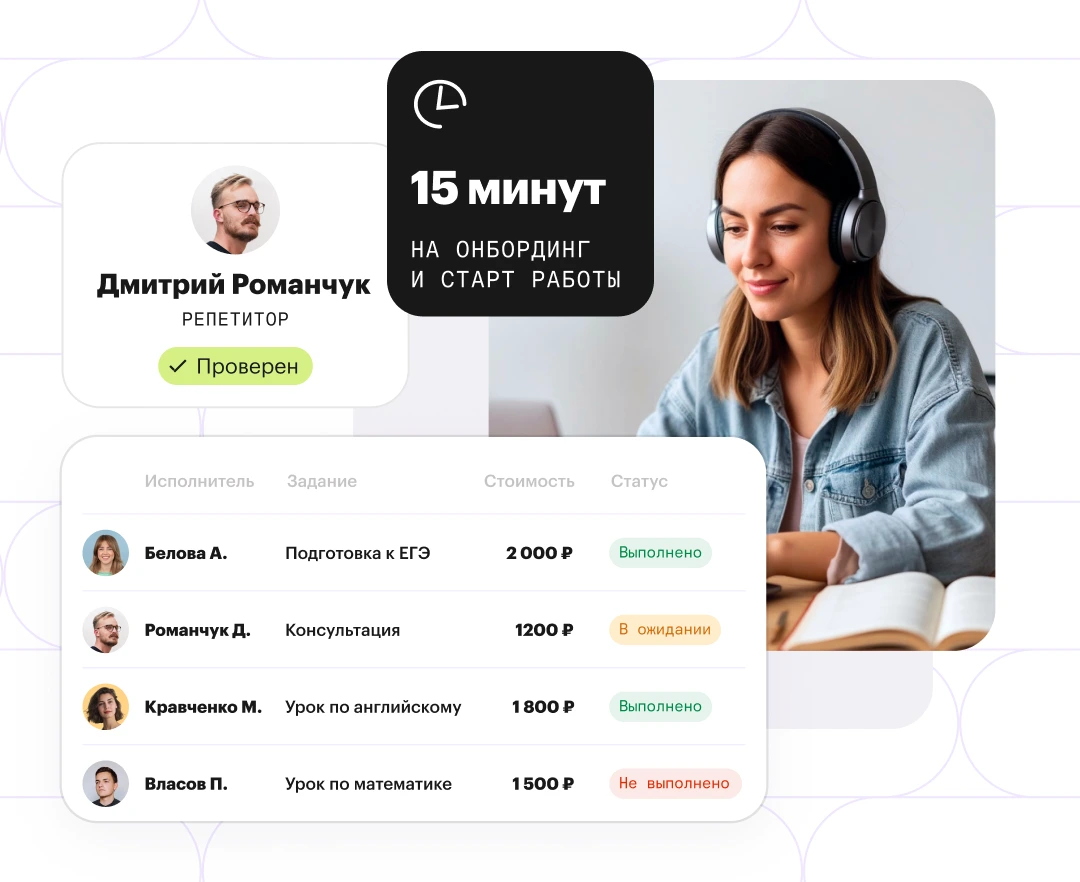 Платформа поддерживает все виды оформления исполнителей, с учетом особенностей каждого статуса: самозанятые, ИП, ГПХ и нерезиденты.