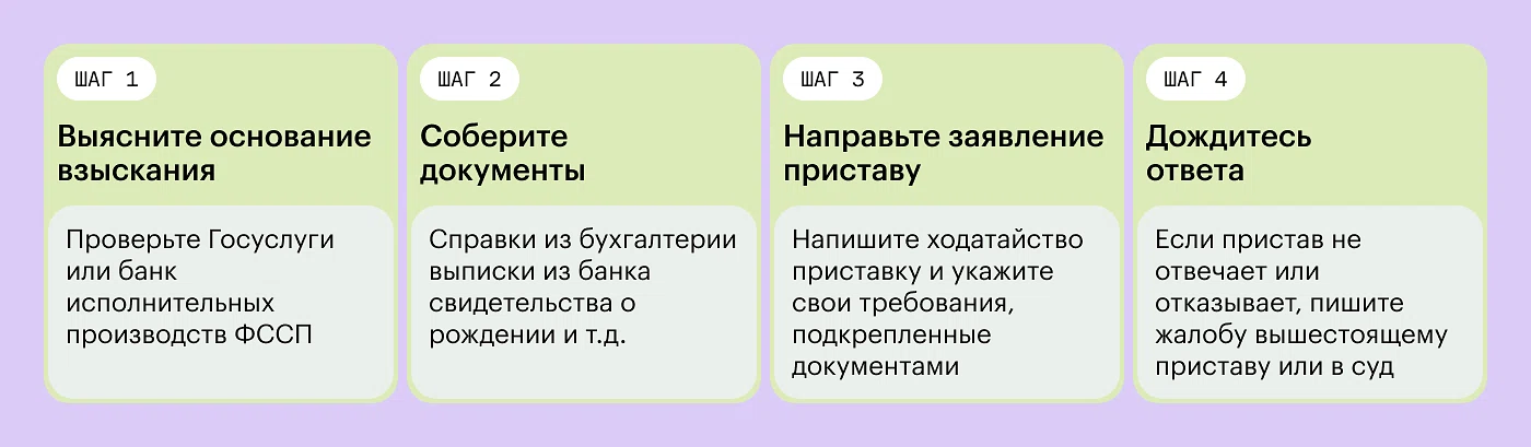 Во-вторых, немедленно обратитесь к своему приставу с заявлением о возврате ошибочно удержанных средств. К заявлению приложите собранные доказательства. В большинстве случаев, увидев документальное подтверждение, сотрудник ФССП возвращает деньги обратно на карту, так как нарушение статьи 101 чревато для него служебными неприятностями.