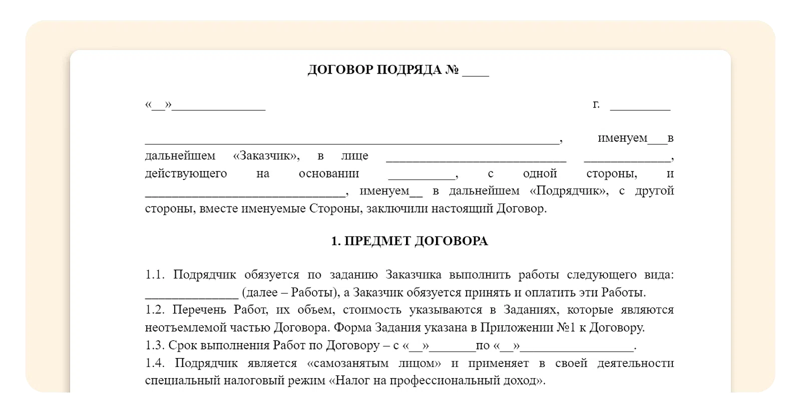 Образец договора подряда с самозанятым