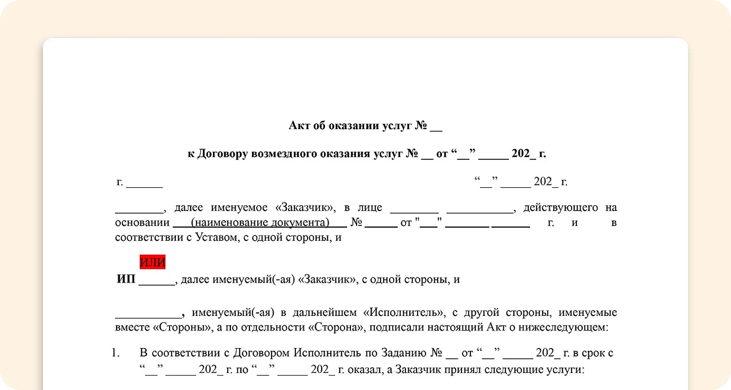 Образец акта об оказании услуг