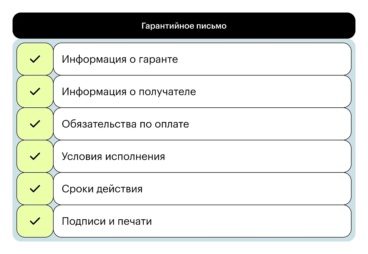 ФИО и должность лица, который подписывает гарантийное письмо от имени организации-инициатора, полное наименование и ИНН этой организации, ее банковские реквизиты;