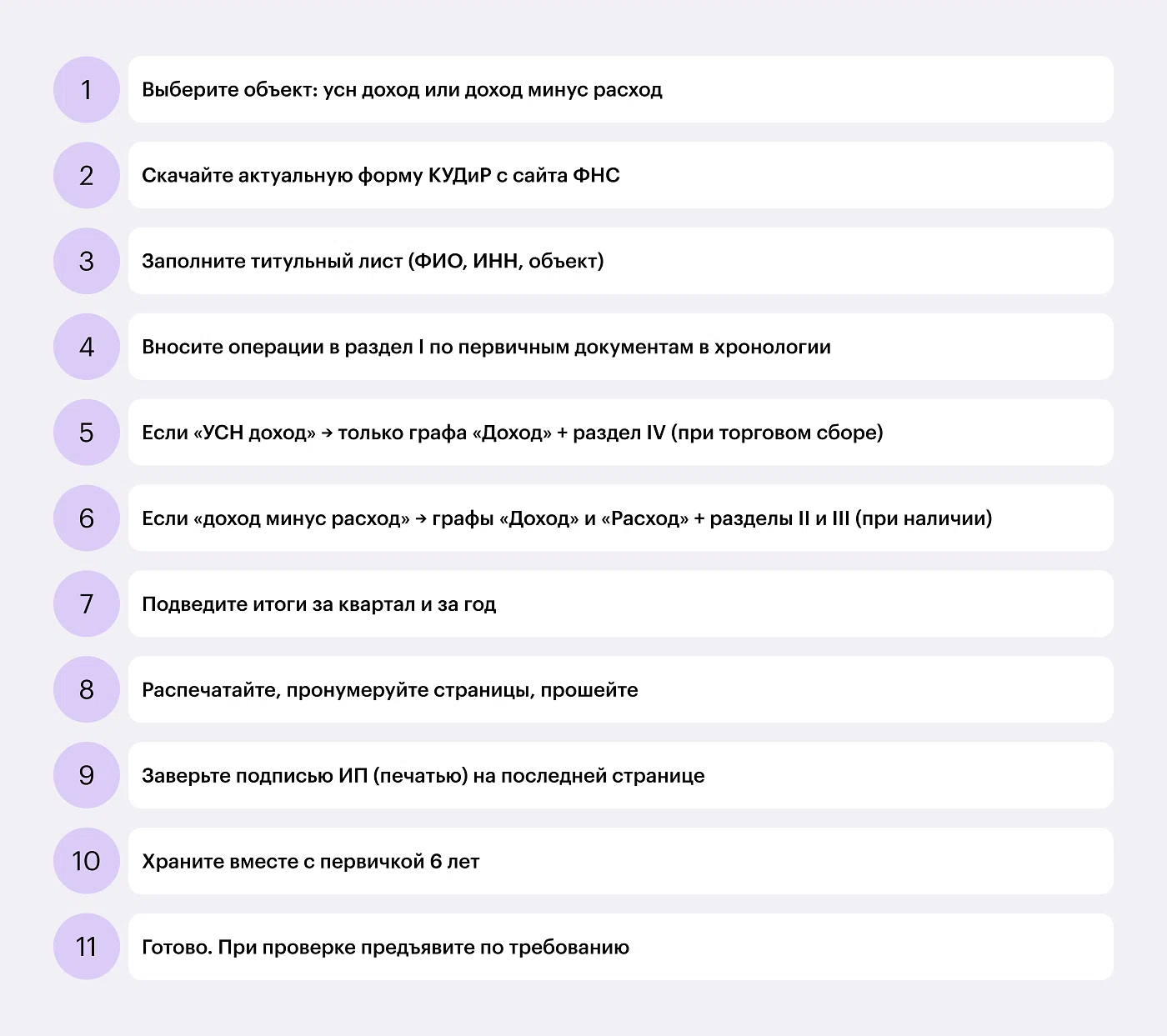 Основные правила заполнения КУДиР: