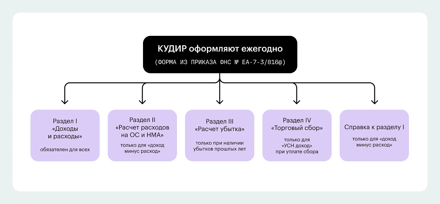 Какие разделы КУДиР нужно заполнять в зависимости от объекта