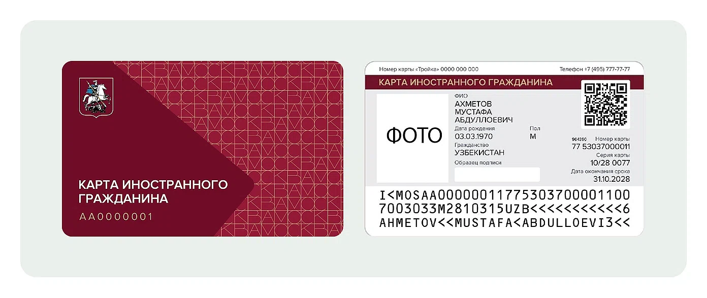 Карту иностранного гражданина — документ, который подтверждает прохождение обязательных процедур и получение патента. Для получения карты нужно обратиться в ГБУ «Миграционный центр» в Миграционном центре «Сахарово». Ее выдают вместе с патентом или после того, как иностранец прошел обязательную дактилоскопию, фотографирование и медицинское освидетельствование.