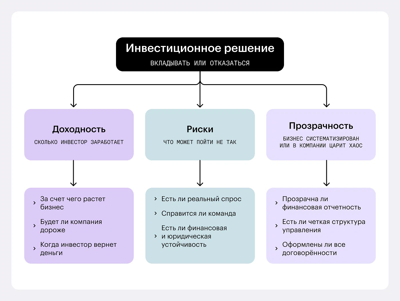 Инвестор рассматривает бизнес как управляемую систему, в которой должны быть понятные правила и структура. Он хочет видеть не только перспективы, но и дисциплину.