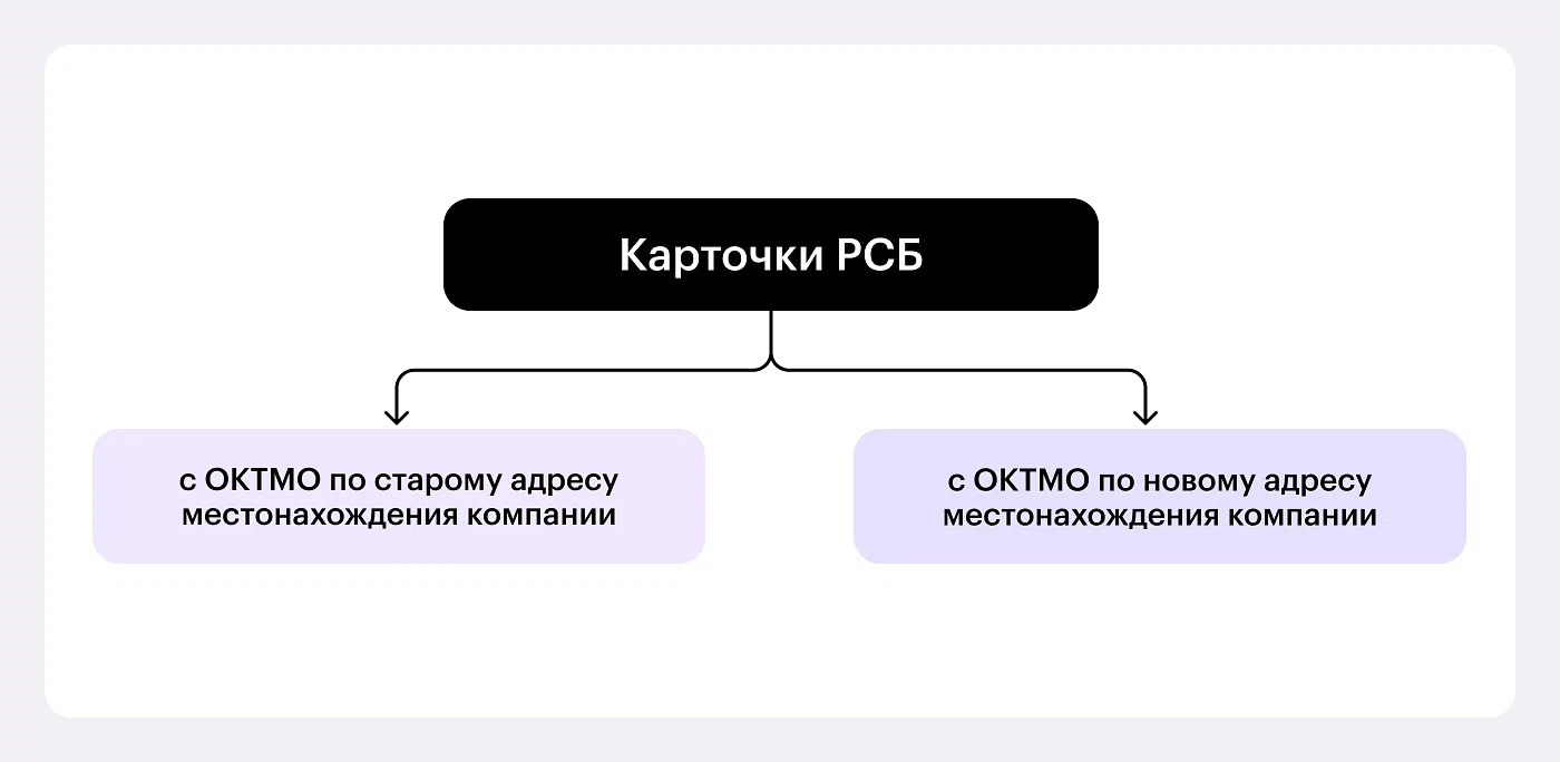 Налоговые органы обязаны вести карточки РСБ по каждому налогоплательщику. Поэтому смена адреса компании повлияет на данные налоговых. В ИФНС по новому месту регистрации в электронном виде будут переданы карточки расчетов с бюджетом почти по всем налогам, если эти объекты остались по прежнему месту нахождения организации и не переданы другому лицу. В ИФНС по прежнему адресу КРСБ должны быть закрыты. Недоимки или переплаты в налоговой по старому юрадресу в налоговом органе по новому месту открывают КРСБ с ОКТМО по старому месту учета.