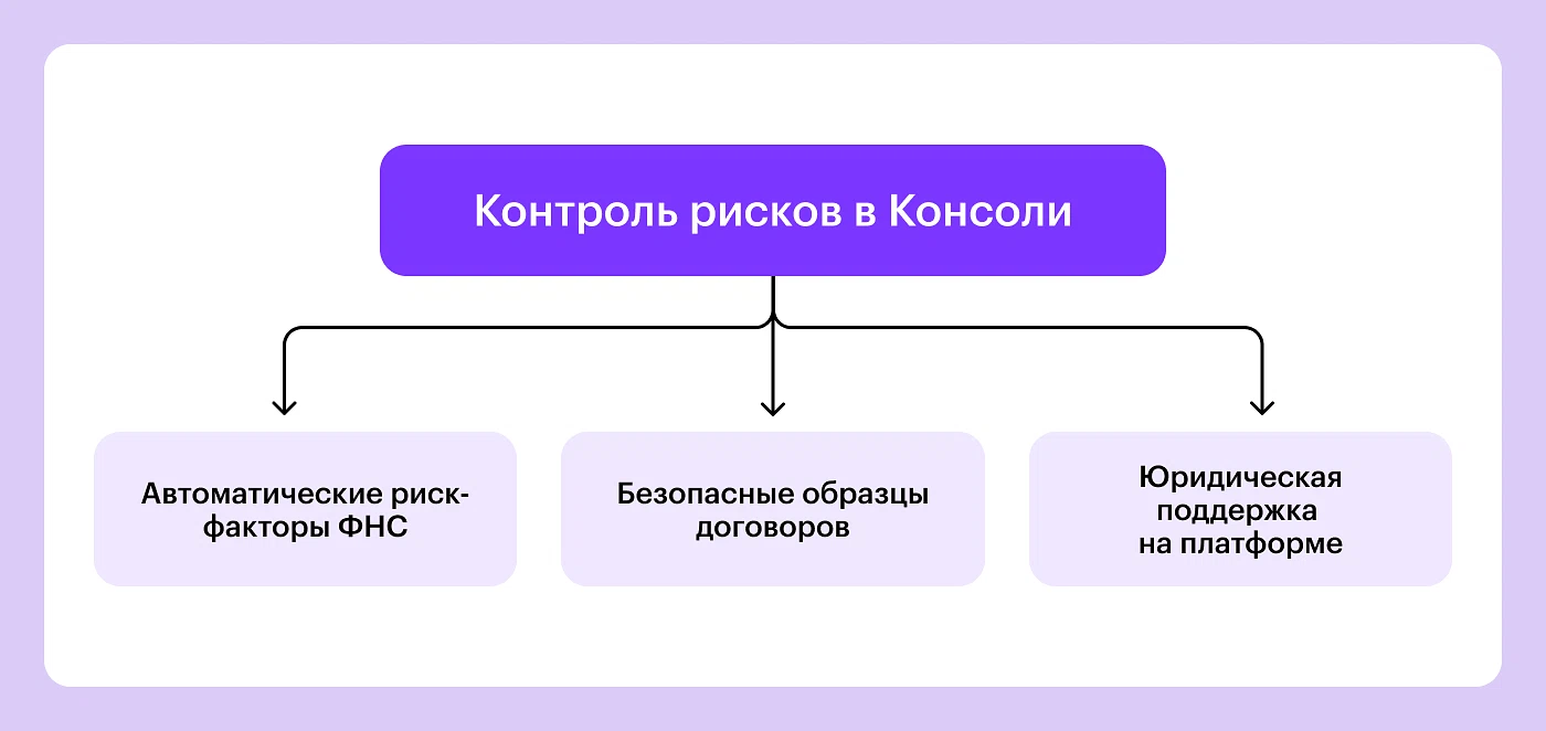 Минимизация рисков | Сложно отследить все юридические тонкости, которые могут привести к переквалификации | Встроенная проверка рисков: платформа анализирует условия договора и характер задач, подсвечивая риски, которые могут привлечь внимание ФНС |