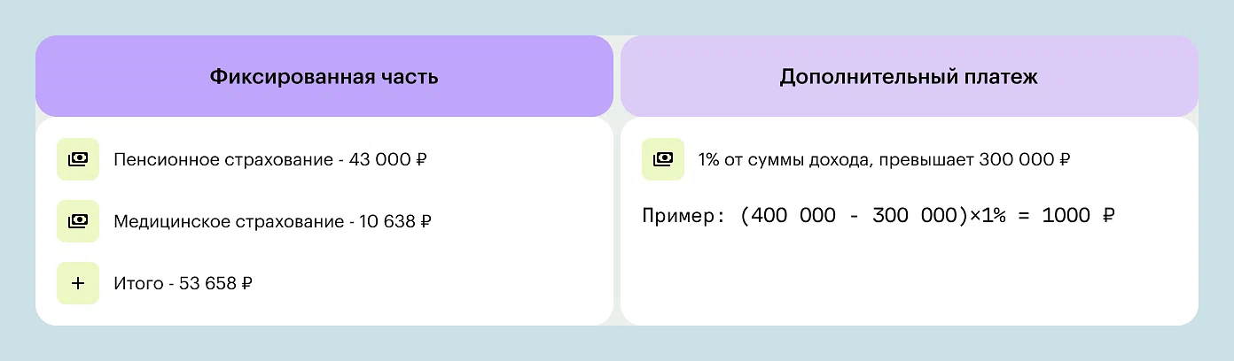 Фиксированный платеж. В 2025 году фиксированный страховой взнос для ИП составляет 53 658 рублей. Эта сумма должна быть перечислена до 28 декабря 2025 года. Важно, что этот платеж является обязательным даже в период отсутствия деятельности или получения убытков.