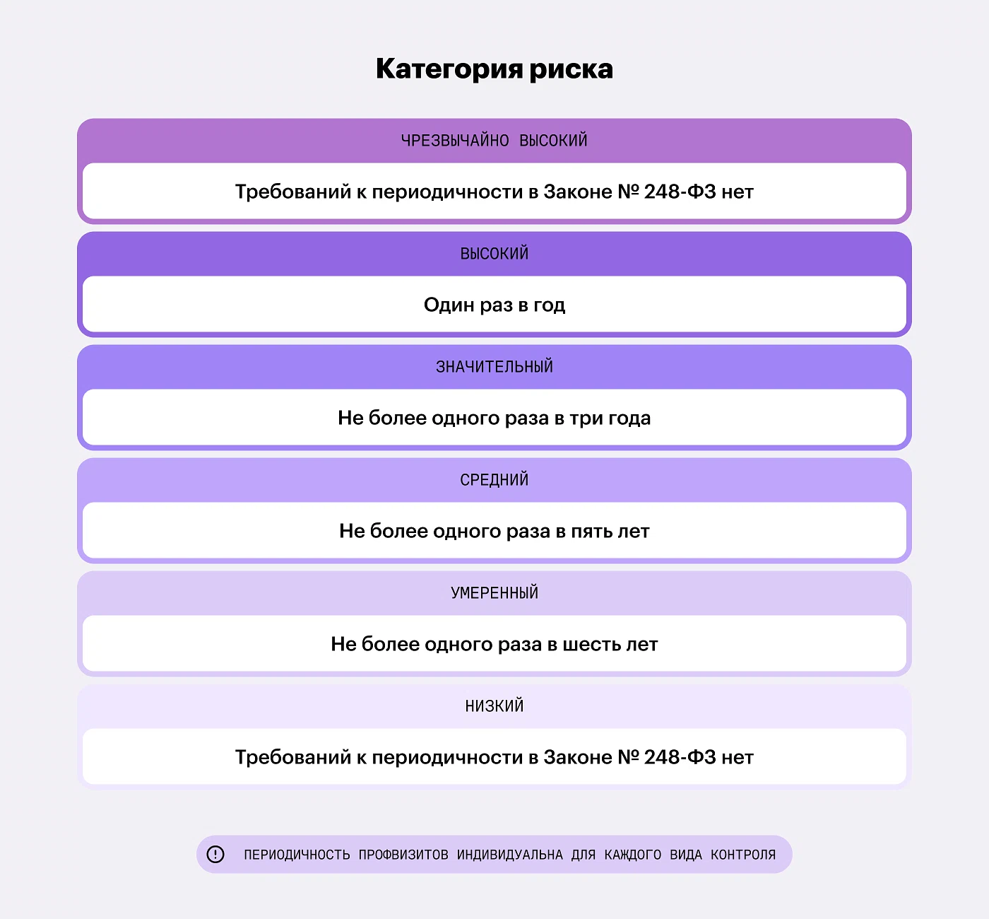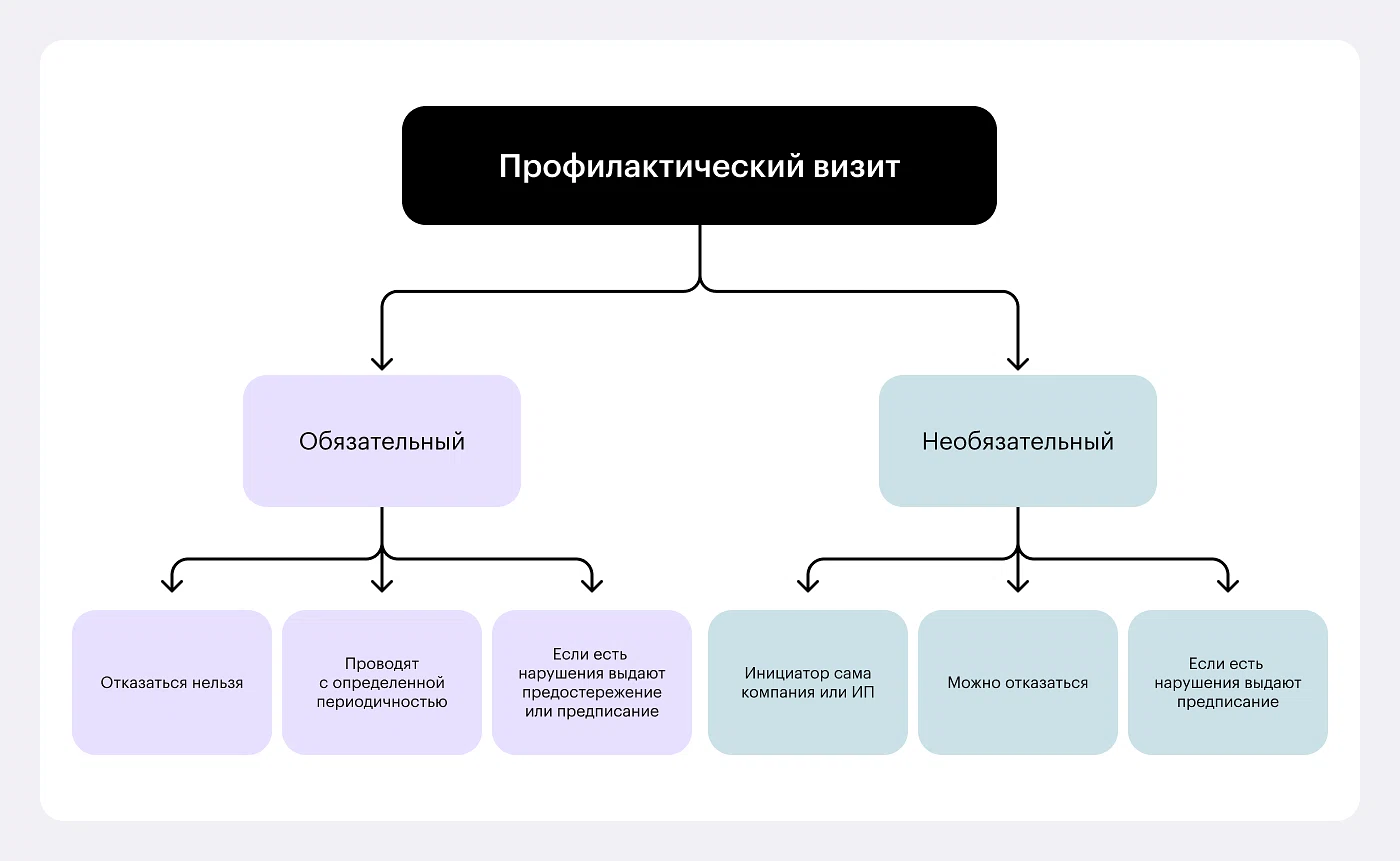Еще одна схожесть профвизита с плановой проверкой — наличие периодичности. Зависит она от категории риска и индивидуальных правил, которые устанавливает контролирующее ведомство.