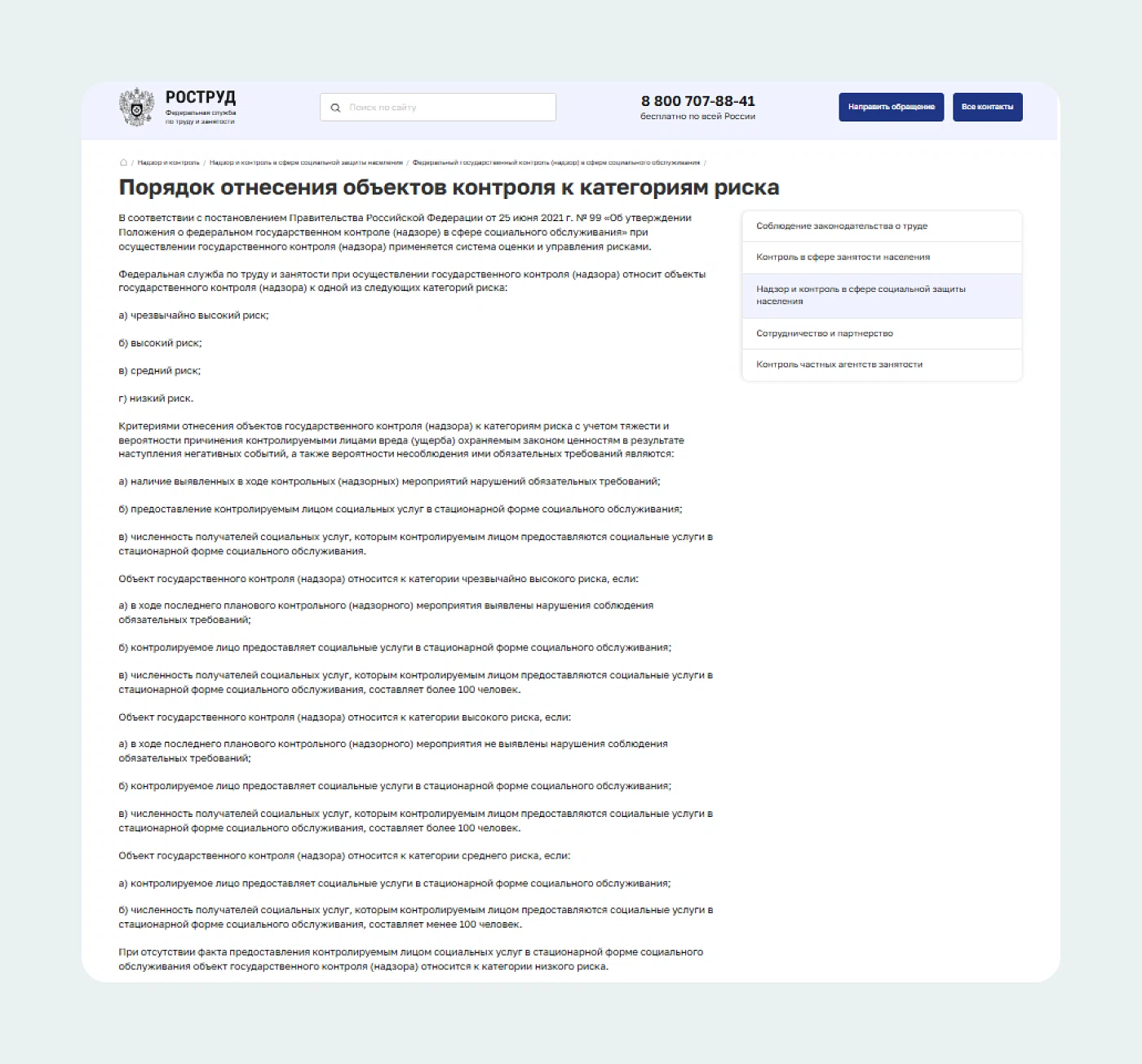 Область контроля и надзора | Нормативное обоснование |