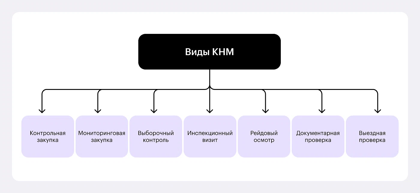 Контрольно-надзорные мероприятия (КНМ) — действия инспекторов по оценке соблюдения организациями и ИП обязательных требований, с последующим применением санкций при обнаружении нарушений. К ним относятся: документарные и выездные проверки, инспекционный визит, рейдовый осмотр и другие формы контроля. Отдельно выделяют два вида КНМ без взаимодействия с контролерами: наблюдение за соблюдением обязательных требований и выездное обследование.