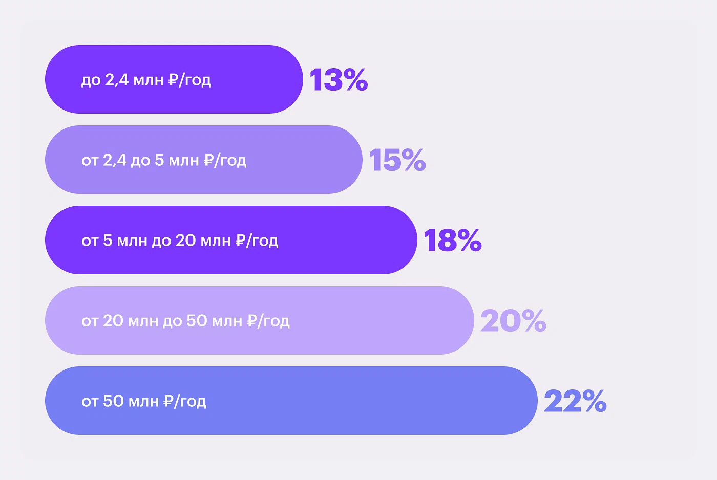 Третья ступень (от 5 млн до 20 млн р., ставка 18%): Доход Елены превысил 5 млн рублей на 2 200 000 р. (7 200 000 — 5 000 000). Именно эта часть будет облагаться по ставке 18%. Налог = 2 200 000 × 18% = 396 000 р.