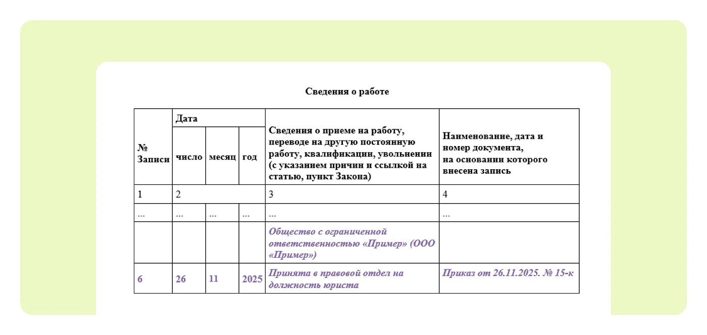 Шаг 4. Оформите трудовую книжку. Запись о приеме на работу делается стандартно. Указывать, что договор срочный, не нужно. А вот при увольнении запись будет особой: «Уволен в связи с истечением срока трудового договора…».