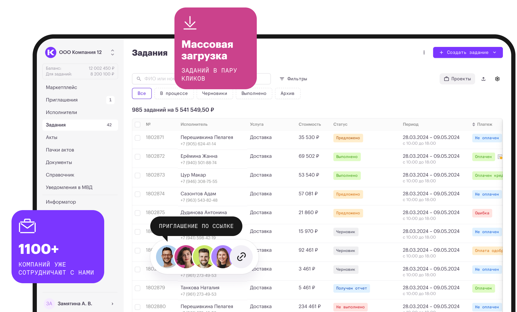 Сотни компаний построили эффективные отношения с исполнителями на платформе Консоль